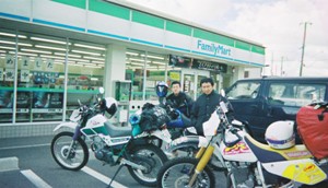 「徳島ラーメンが食いたんですよねぇ」とはトドロッキー。しかし早朝出発のおかげでラーメン屋は閉まっており断念。さらにはうどん屋も開いておらず。仕方なく入ったサンクス。朝食の代わりのカップラーメンを買ったところでこの旅2回目の”ふれあいシーン”。「どこまで行くんですか?」「剣山方面へ」「寒いらしいよ~。ところでさっきの人が言っていたんだけど、鳴門大橋はバイクの人には横風が・・・あっ、いらっしゃいませ~」(実は、店員さんに声をかけられたのですが、新たなお客さんが来て途中でふれあいが終わってしまいました)。
